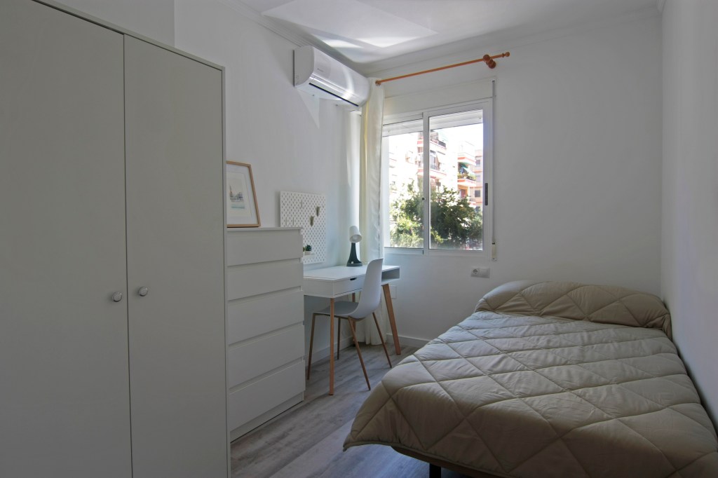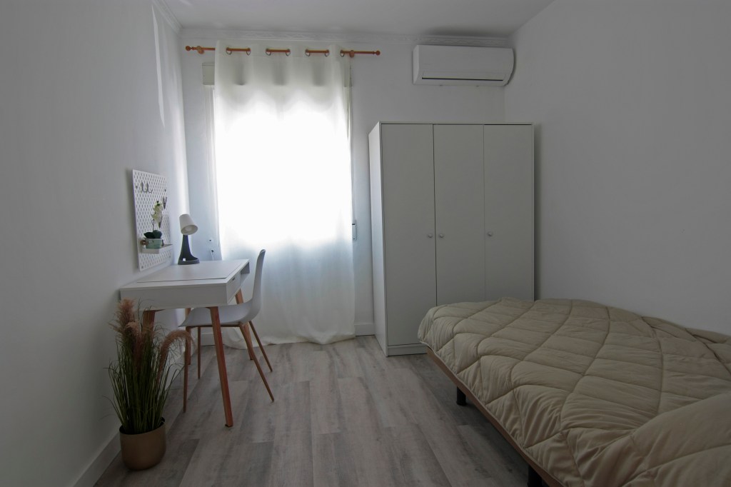 En este piso reformado encontrarás 4 habitaciones equipadas con una amplia cama de matrimonio, ofreciendo comodidad y amplitud para tu descanso y estudio. Cada habitación cuenta con un escritorio y espacio de almacenaje propio.